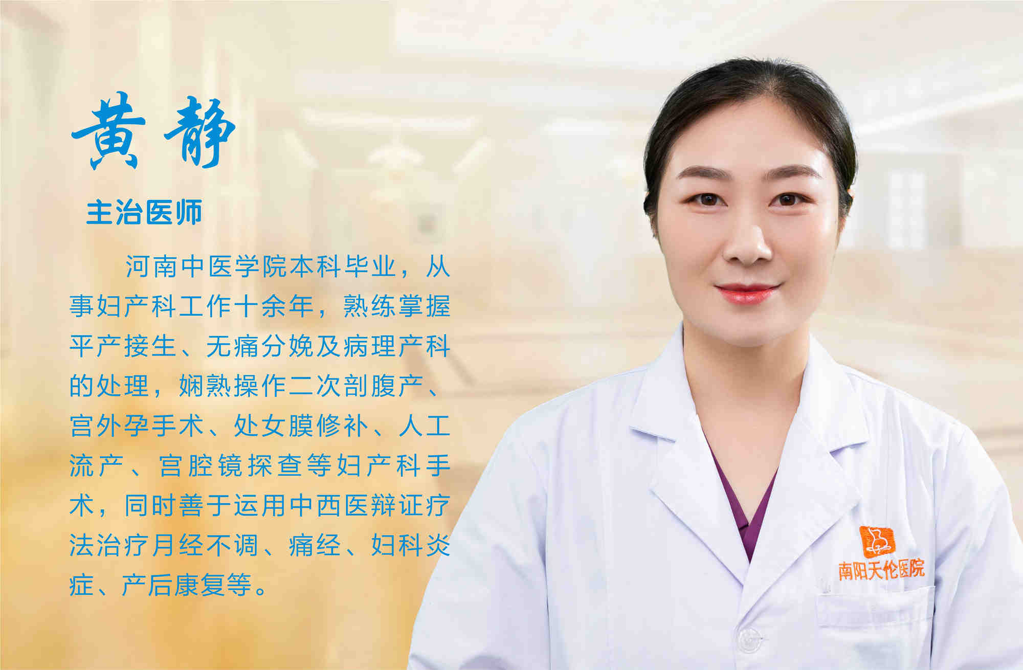 河南中医学院本科毕业,从事妇产科工作十余年,熟练掌握平产接生、无痛分娩及病理产科的处理,娴熟操作二次剖腹产、宫外孕手术、处女膜修补、人工流产、宫腔镜探查等妇产科手术,同时善于运用中西医辩证疗法治疗月经不调、痛经、妇科炎症、产后康复等。